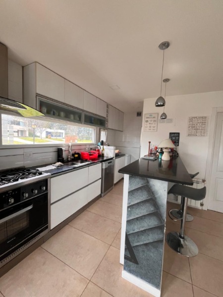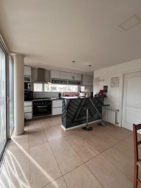 - Cocina integrada con ventanal al frente, y barra desayunador.