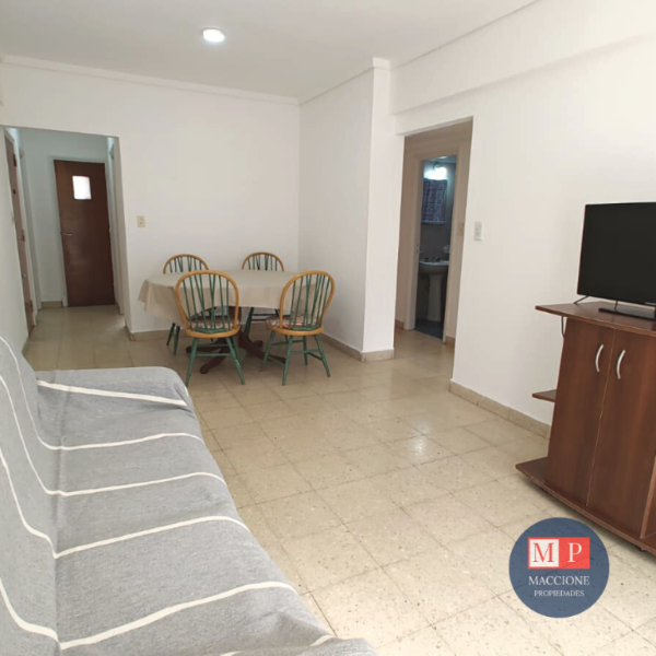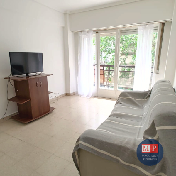 - Amplio living comedor con sillón cama doble y salida al balcón.
