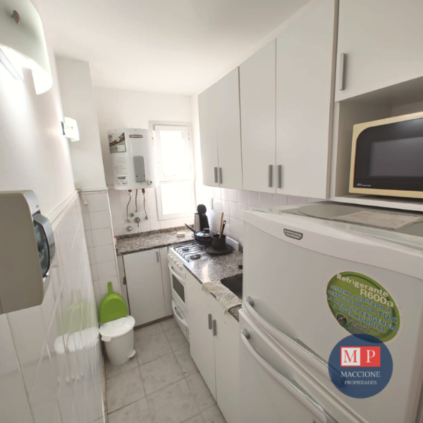 - Cocina separada con vajilla, pava eléctrica, heladera, microondas.