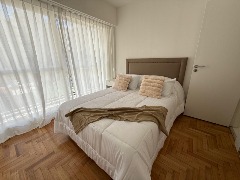 🛌 Dormitorio con pisos parquet pulido, lustrado y plastificado, con amplio placard. Con sommier de 2 plazas, respaldo de cama y mesas de luz.