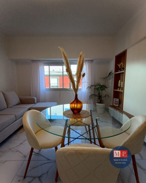 - Living al frente con balcón saliente, con amoblamiento completo.