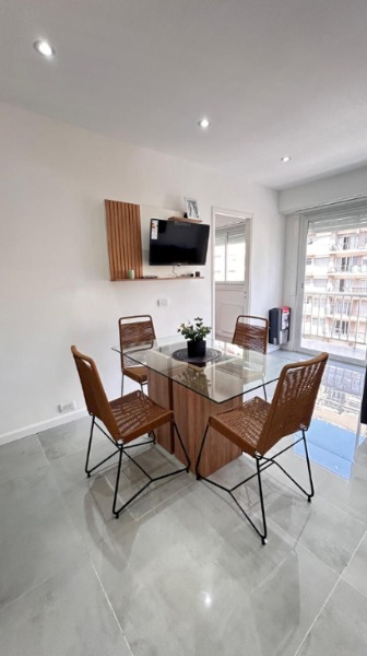 ✔️Cómodo living comedor amoblado con mesa y sillas, sillón, y mueble con Tv.