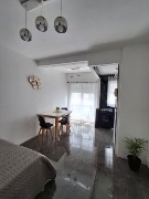 Living de ingreso, totalmente amoblado, con calefactor tiro balanceado, y ventanal al patio interno.