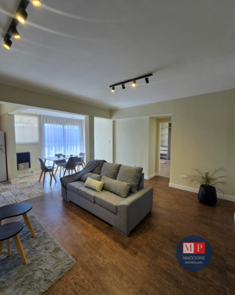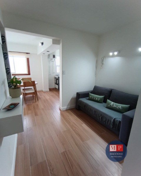 Living de ingreso, totalmente amoblado, con calefactor tiro balanceado, y ventanal al patio interno.
