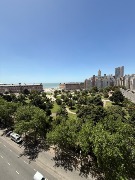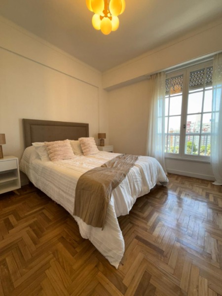 🛌 Dormitorio con pisos parquet pulido, lustrado y plastificado, con amplio placard de 6 hojas. Con sommier de 2 plazas, respaldo de cama y mesas de luz, vista al mar